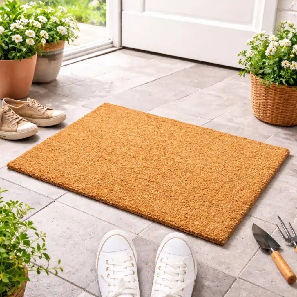 Verleihen Sie Ihrem Eingangsbereich mit unseren erstklassigen Kokos-Fußabtretern eine natürliche und stilvolle Note. Die robusten Kokosfasern reinigen effektiv die Schuhsohlen und halten Schmutz, Staub und Feuchtigkeit zuverlässig draußen. So bewahren Sie die Sauberkeit in Ihrem Zuhause – einfach, nachhaltig und elegant.