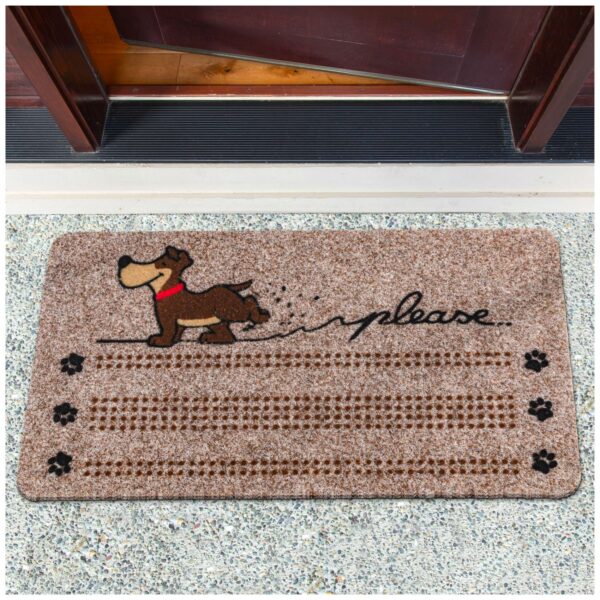 Die Fußmatte “Hund” in der Größe 40×70 cm ist der ideale Türvorleger für alle Hundeliebhaber, die ihrem Eingangsbereich eine persönliche Note verleihen möchten. Mit einem liebevollen Hundemotiv vereint diese Schmutzfangmatte funktionale Eigenschaften mit einem charmanten Design. Die samtige Oberfläche sorgt für eine angenehme Optik und gleichzeitig für eine effektive Schmutzaufnahme. Dank der strapazierfähigen Struktur aus polypropylen Nadel-gestanztem Material ist sie besonders langlebig. Die rutschfeste Unterseite mit Anti-Rutsch-Gummilatex-Trägers sorgt für Stabilität und Sicherheit, sodass die Matte nicht verrutscht. Diese Fußmatte eignet sich sowohl für den Innen- als auch für den Außenbereich und ist leicht zu reinigen, da sie bei 30°C von Hand gewaschen werden kann. Mit ihrem attraktiven Design bringt die Matte Freude in jeden Eingang.