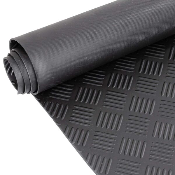 Gummiboden aus TPE als praktische Meterware in 140cm Breite. Mit 3mm Stärke bietet diese Gummimatten Meterware reichlich Schutz für Böden aller Art. Egal, ob Sie den Gummiboden in einer Werkstatt oder im Keller verlegen oder gleich eine gesamte Produktionshalle damit optimieren, dieses TPE Gummi ist für alle Einsatzbereiche ideal. Es ist mit einer Reißdehnung von 200% extrem strapazierfähig, schützt starkfrequentierte Laufwege und bietet dank seiner Riffelblech-Strukturierung besonders hohe Trittsicherheit. Einfach verlegt dank fein strukturierter Unterseite für optimale Kleberaufnahme. Auch für öffentliche Bereiche, Schulen und Outdoor-Anwendung, weil einsatzfähig im Temperaturbereich zwischen -20°C und 70°C. Jetzt Gummiboden mit Noppen in Schwarz und Grau entdecken!