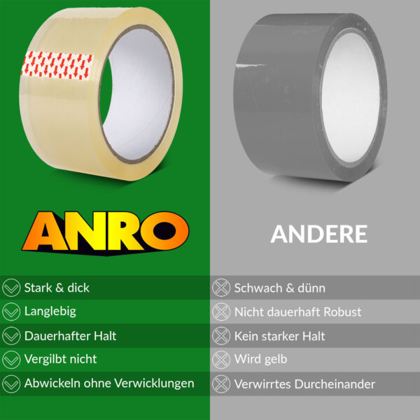 Unser transparentes Paketklebeband ist die ideale Lösung für eine Vielzahl von Verpackungsaufgaben. Es besteht aus hochwertigem BOPP-Polypropylen und bietet eine gute Haftkraft, die Ihre Kartons sicher und fest versiegelt. Die Reißfestigkeit sorgt dafür, dass das Band auch bei intensiver Nutzung nicht reißt. Mit der geräuscharmen Abrollung können Sie Ihre Pakete unkompliziert und leise verpacken, was es perfekt für den Einsatz in Büros und anderen ruhigen Umgebungen macht. Zudem ist es im Set von 6er und 36er Rollen erhältlich, sodass Sie immer ausreichenden Nachschub haben.