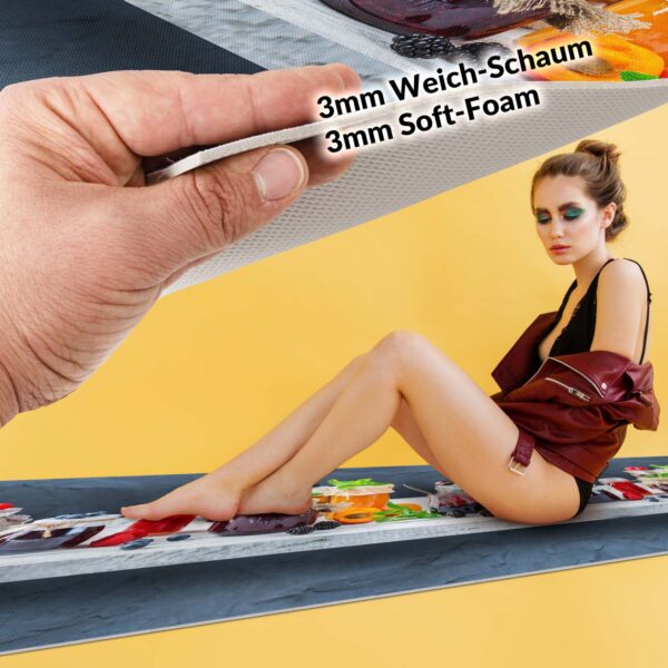 Der Küchenläufer ist modern und pflegeleicht und macht ihn damit zum absoluten Allrounder im gesamten Haus. Egal ob im Flur, im Wohnzimmer oder im Bad, der Läufer ist nicht nur in der Küche einsetzbar. Er schützt den Boden und sorgt durch die rutschfeste Unterseite aus PVC-Weichschaum für ein hohes Maß an Sicherheit. Da der Küchenteppich keine Umkettelung hat, kann man ihn ganz einfach auch im Nachhinein noch an die Gegebenheiten vor Ort anpassen. Das Obermaterial aus Polyester ist besonders robust und abriebfest, sodass auch bei frequentierter Nutzung der Küchenläufer Ihnen lange Freude bereitet.