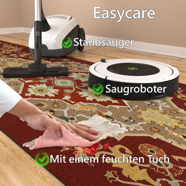 Unser Küchenläufer aus Polyester ist besonders robust, langlebig und pflegeleicht. Mit unserer großen Auswahl von modernen Designs wird der Küchenteppich zu einem echten Hingucker in Ihrem zu Hause und sorgt für gute Laune. Besonders praktisch ist zudem, dass der Teppichläufer äußerst leicht zu reinigen ist. Er kann einfach abgesaugt oder mit einem feuchten Tuch abgewischt werden. Bei hartnäckigen Flecken kann der Läufer sogar in der Maschine bei 30 Grad ohne Schleudergang gewaschen werden.