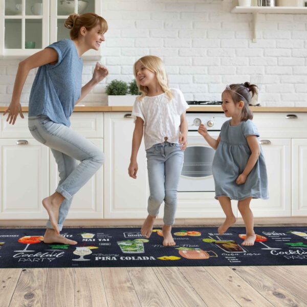 Der Küchenläufer ist modern und pflegeleicht und macht ihn damit zum absoluten Allrounder im gesamten Haus. Egal ob im Flur, im Wohnzimmer oder im Bad, der Läufer ist nicht nur in der Küche einsetzbar. Er schützt den Boden und sorgt durch die rutschfeste Unterseite aus PVC-Weichschaum für ein hohes Maß an Sicherheit. Da der Küchenteppich keine Umkettelung hat, kann man ihn ganz einfach auch im Nachhinein noch an die Gegebenheiten vor Ort anpassen.  Das Obermaterial aus Polyester ist besonders robust und abriebfest, sodass auch bei frequentierter Nutzung der Küchenläufer Ihnen lange Freude bereitet.