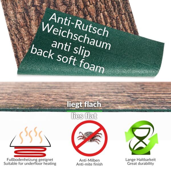 Küchenläufer waschbar Küchenteppich rutschfest Sprinty Baumrinde 52cm Breite