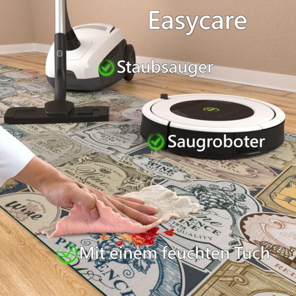 Bringen Sie frischen Schwung in Ihre Küche mit unserem modernen Küchenläufer! Die Oberseite besteht aus 100% Polyester und ist mit einem stilvollen Druck versehen, der jedem Raum eine ansprechende Note verleiht. Mit einer Höhe von nur 3 mm und einer Breite von 52 cm fügt sich der Läufer nahtlos in Ihre Küchengestaltung ein.Die granulierte PVC-Unterseite sorgt für eine rutschfeste Basis, die Ihnen Sicherheit und Stabilität beim Kochen und Arbeiten bietet. Dank seiner schmutz- und fleckabweisenden Eigenschaften ist der Küchenläufer äußerst pflegeleicht und kann bei Bedarf bis zu 40 °C in der Waschmaschine gereinigt werden. Darüber hinaus ist er zuschneidbar, sodass Sie ihn ganz einfach an Ihre Wunschgröße anpassen können – ganz ohne Ausfransen. Sein strapazierfähiges Material macht ihn multifunktional: Er ist nicht nur ideal für die Küche, sondern kann auch in anderen Wohnbereichen eingesetzt werden. Zudem ist der Küchenläufer für die Nutzung auf Fußbodenheizungen geeignet, was ihn zu einer vielseitigen und praktischen Wahl für Ihr Zuhause macht!