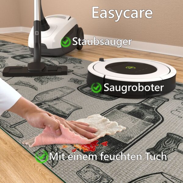 Bringen Sie frischen Schwung in Ihre Küche mit unserem modernen Küchenläufer! Die Oberseite besteht aus 100% Polyester und ist mit einem stilvollen Druck versehen, der jedem Raum eine ansprechende Note verleiht. Mit einer Höhe von nur 3 mm und einer Breite von 52 cm fügt sich der Läufer nahtlos in Ihre Küchengestaltung ein.Die granulierte PVC-Unterseite sorgt für eine rutschfeste Basis, die Ihnen Sicherheit und Stabilität beim Kochen und Arbeiten bietet. Dank seiner schmutz- und fleckabweisenden Eigenschaften ist der Küchenläufer äußerst pflegeleicht und kann bei Bedarf bis zu 40 °C in der Waschmaschine gereinigt werden. Darüber hinaus ist er zuschneidbar, sodass Sie ihn ganz einfach an Ihre Wunschgröße anpassen können – ganz ohne Ausfransen. Sein strapazierfähiges Material macht ihn multifunktional: Er ist nicht nur ideal für die Küche, sondern kann auch in anderen Wohnbereichen eingesetzt werden. Zudem ist der Küchenläufer für die Nutzung auf Fußbodenheizungen geeignet, was ihn zu einer vielseitigen und praktischen Wahl für Ihr Zuhause macht!