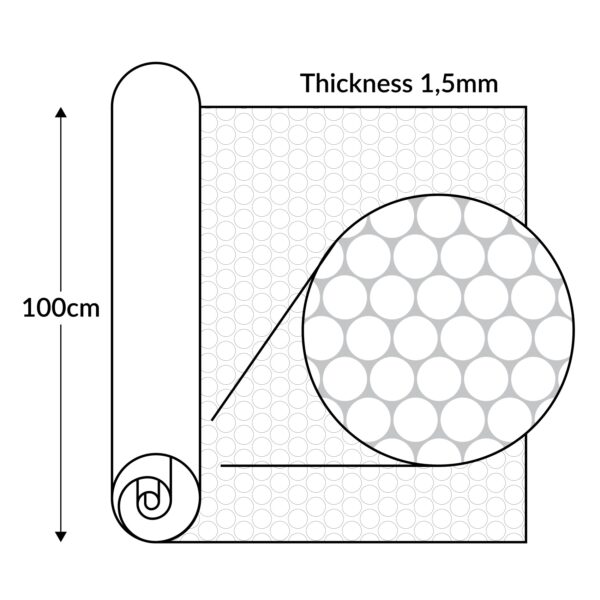Unser Noppen PVC-Bodenbelag in Meterware ist eine robuste und funktionale Lösung für industrielle Anwendungen und gewerbliche Nutzung. Hergestellt aus 100% PVC, bietet dieser Bodenbelag eine Breite von 100 cm und eine Stärke von 1,5 mm, was ihn besonders belastbar und langlebig macht. Die genarbte Rückseite ermöglicht eine einfache und sichere Verklebung, wodurch eine zuverlässige und dauerhafte Befestigung gewährleistet ist. Der Bodenbelag ist geruchsneutral, rutschfest und äußerst strapazierfähig, ideal für anspruchsvolle Umgebungen. Ob in Produktionsstätten, Lagerhallen, Werkstätten oder öffentlichen Einrichtungen wie Turnhallen und Eingangsbereichen – unser Noppen PVC-Bodenbelag überzeugt durch Vielseitigkeit und Funktionalität. Er stellt eine ausgezeichnete Alternative zu herkömmlichen Linoleum-Bodenbelägen dar und erfüllt höchste Ansprüche an Sicherheit und Nutzungskomfort. Optimieren Sie Ihre Arbeitsumgebung mit einem Bodenbelag, der nicht nur ästhetisch ansprechend, sondern auch haftfest und pflegeleicht ist. Vertrauen Sie auf Qualität und Leistung bei der Bodengestaltung!