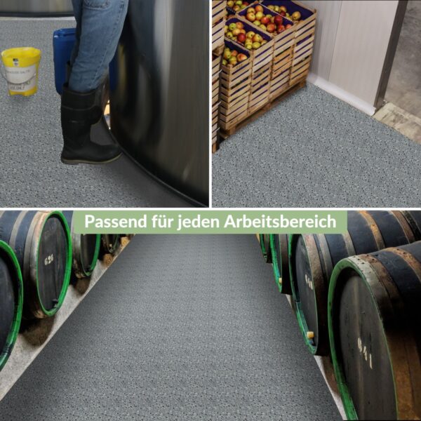 Gefertigt aus 100% PVC überzeugt der Belag durch seine hohe Strapazierfähigkeit und Langlebigkeit. Seine wasserfeste Oberfläche macht ihn besonders pflegeleicht und widerstandsfähig gegen Feuchtigkeit, sodass er auch in stark beanspruchten Bereichen wie Küchen, Fluren oder Büros problemlos eingesetzt werden kann. Die Eignung für Fußbodenheizungen sorgt zudem für eine angenehme Wärmeverteilung und ein behagliches Raumklima, was den Wohnkomfort deutlich erhöht. Der Bodenbelag sorgt außerdem für eine deutliche Reduzierung von Gehgeräuschen und macht das Gehen auf dem Boden besonders angenehm. Mit einer Materialstärke von nur 1 mm ist der PVC Bodenbelag Terrazo Grau besonders dünn, was eine einfache Verlegung auch bei Renovierungen mit begrenztem Platzangebot ermöglicht.