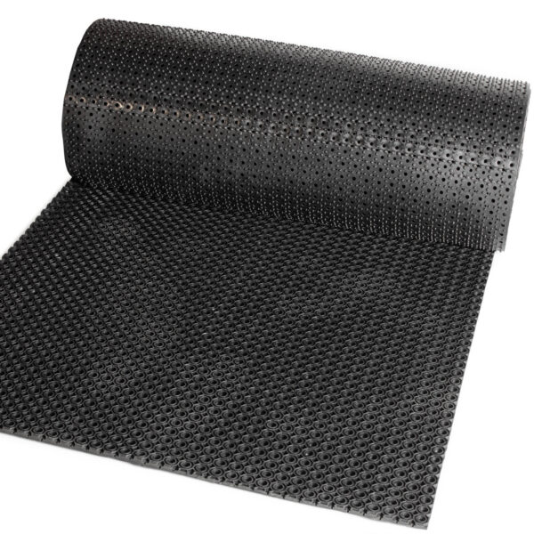 Ringgummimatten verdanken ihren Namen dem ringförmigen Lochmuster. Diese Struktur sorgt dafür, dass Wasser ungehindert abfließen kann. Außerdem verfügt eine Ringgummimatte durch ihre wabenartige Beschaffenheit über stoßdämpfende Eigenschaften. Dank dieser und weiterer Merkmale ist eine Ringmatte besonders im Außenbereich vielseitig einsetzbar. Erhältlich sind die Matten in unterschiedlichen Größen und Stärken. Sie bestehen aus Naturgummi, sind strapazierfähig, belastbar und wetterfest. Durch ihre Struktur bieten sie zudem einen festen Halt und minimieren die Gefahr, bei Feuchtigkeit auszurutschen. Eine Ringgummimatte lässt sich lose verlegen und eignet sich für viele Böden. Besonders von Vorteil sind ebenso ihr hohes Eigengewicht und rutschfeste Unterseite: Beide Merkmale bewirken, dass die Matte auf der gewählten Stelle liegen bleibt und nicht über den Boden rutscht.
